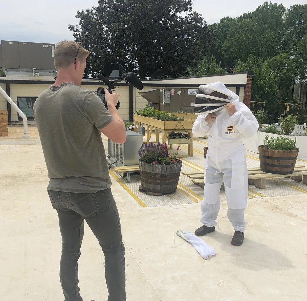 Filming Chef in the Bee Keeper Suit, bees don’t like cameramen.