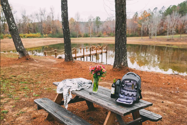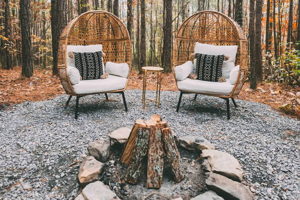 Treehouse is basically one single room with bathroom on the side. The double outdoor showers are down the pathway. There will be firewood provided should you want to enjoy a fire in the pit. Bring your own marshmallows. You’ll also have a paddle boat at the 2-acre lake available to you, just sign the waiver.