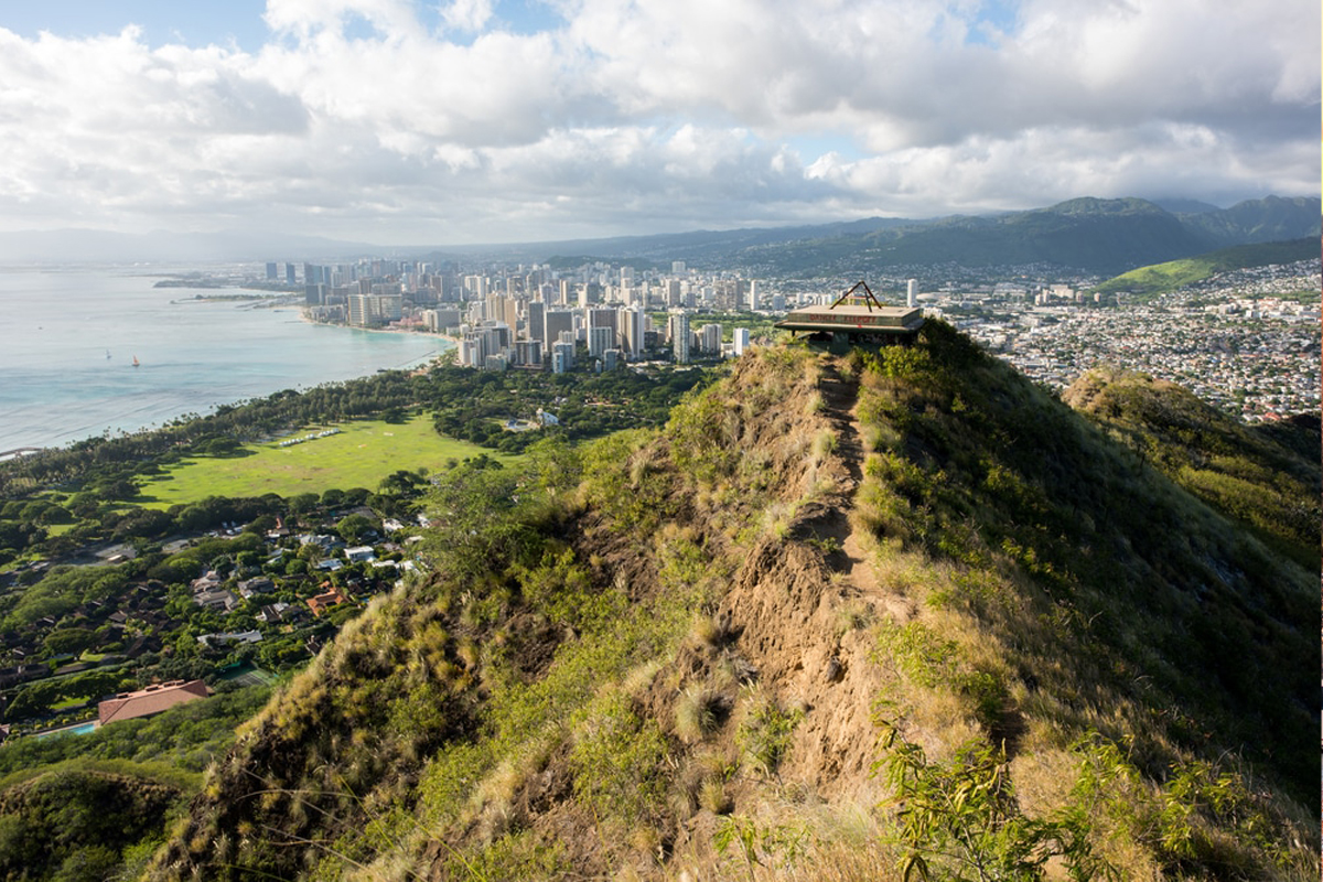The best view of Oahu is at the Diamond Head State Monument, 761 feet above sea level. Though the hike is semi-strenuous and takes around 1-2 hours to complete, it’s worth it for the experience and the view.