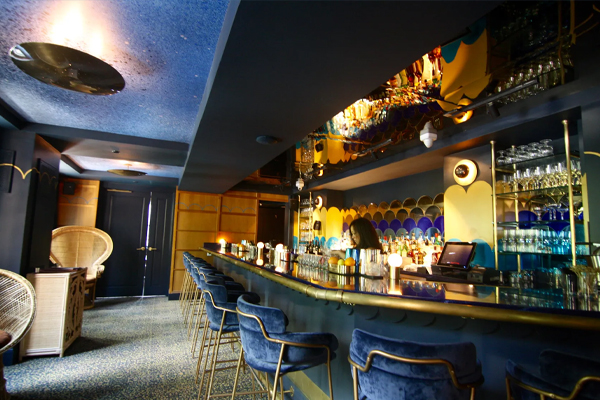 Clermont bar with peacock theme.