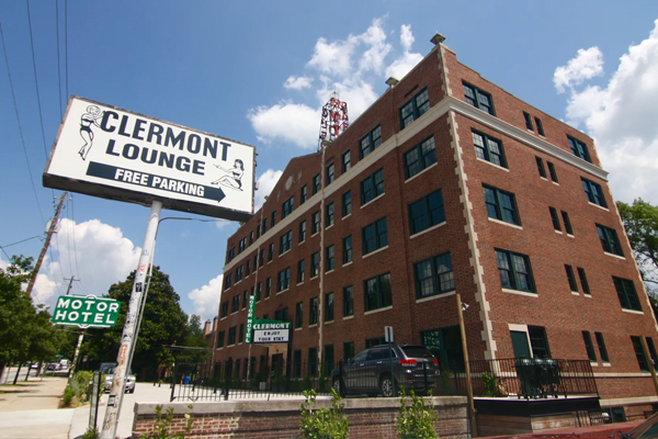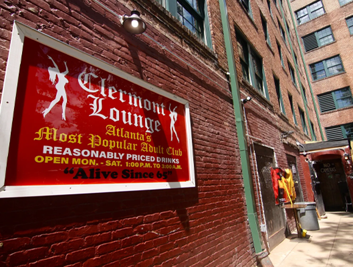 The hotel was originally built as high-end Bonaventure Arms Apartments, with substantial amenities for the time such as two elevators. In 1939, it reopened as the Hotel Clermont, catering to travelers on Ponce de Leon Avenue which was then a fancy thoroughfare. Around the midcentury mark, the first iteration of a dinner club opened in the downstairs of the hotel, followed by the Gypsy Room (where dancer Tiny Lou headlined in 1952), and the Playboy Club. Black ties, bunny outfits, and pricey steaks once reigned where Blondie now operates – now the Clermont Lounge which opened in 1965 or 1968 depending on who you talk to.