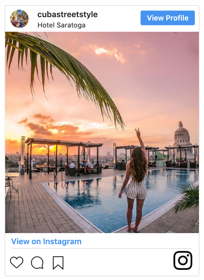 The Saratoga Hotel is located within walking distance to the Nacional Capitol, the Martí Theatre, the Partagas Cigar (Tobaccos) Factory, ballet society of Gran Teatro de La Habana, and the old Presidential Palace now the Museum of the Revolution.