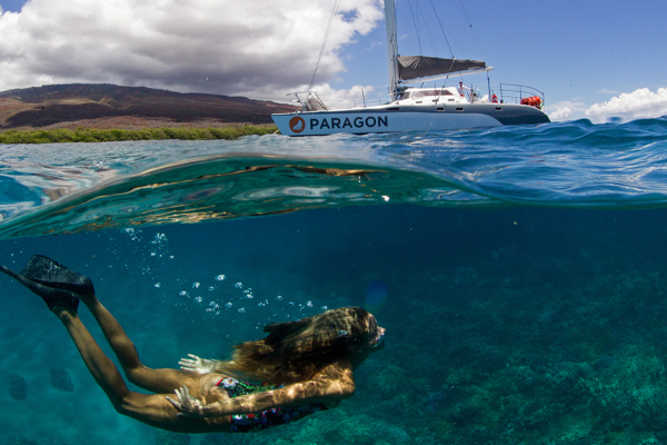 From the “Pali Coast Snorkel & Performance Sail” tour to the “Discover Molokini” snorkel tour, Maui sail offers many adventures. The “Paragon Performance Sunset Sail” will allow you and guests to watch the sun dip below the horizon while gliding along the picturesque West Maui coast. The “Lana’i Picnic Sail” offers a chance to snorkel to the exclusive island of Lana’i which has been named one of the top 10 snorkel destinations in the world. The whale watching adventure is one of the most popular in the winter months, where you can see humpback whales. Sail through the ‘Au ‘au channel off the coast of Maui which is an ideal location for the humpbacks to mate and give birth to their calves.