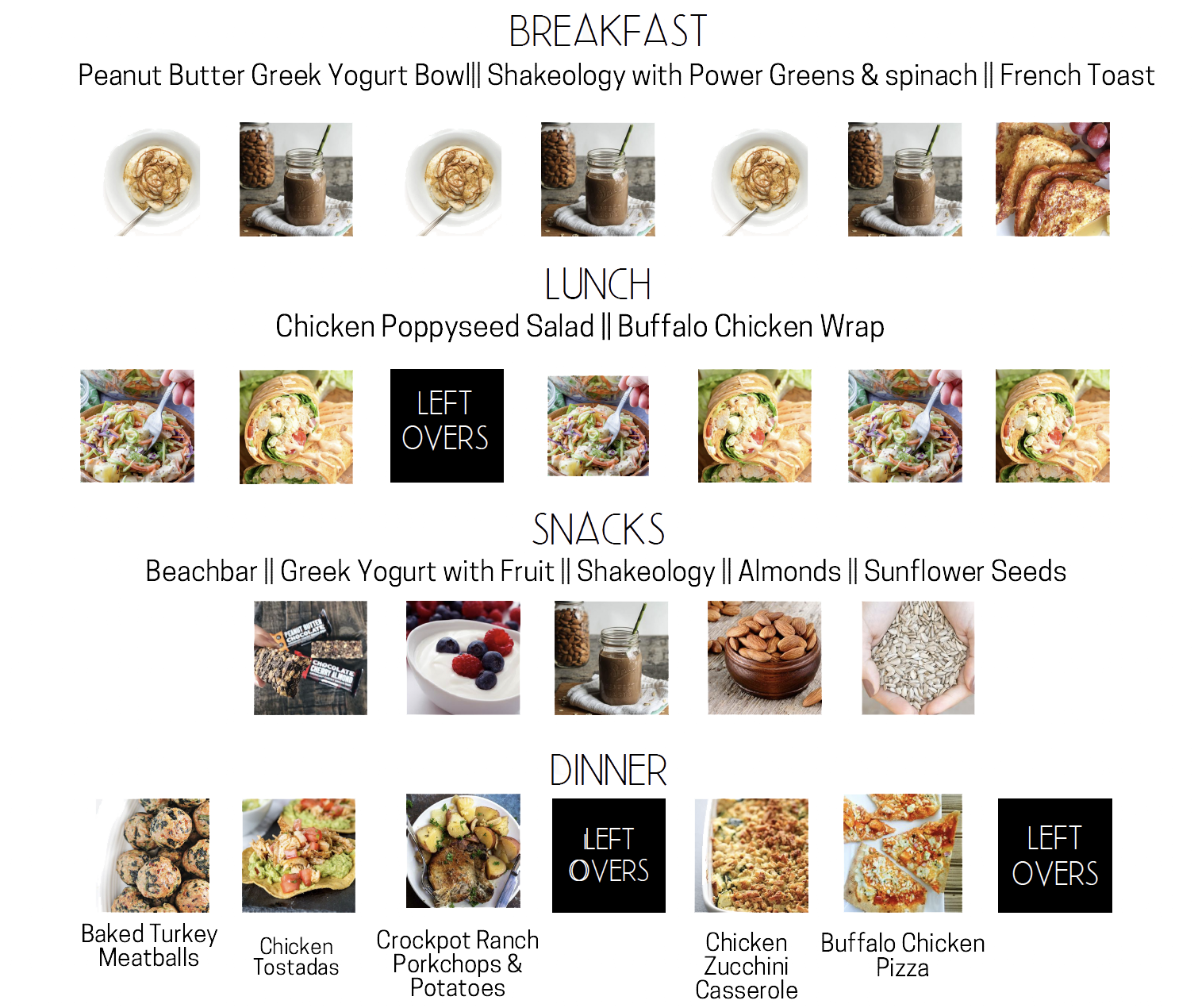 - These meal plans take into account that you are incorporating Shakeology, collagen, Energze, Recover and Beachbars. If you are missing any supplements and need or wish to try them, connect with me!