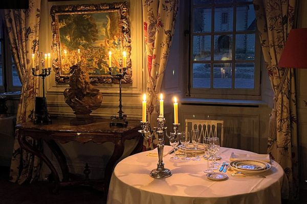 Many couples opt for a candlelit dinner, where soft flickering light, locally sourced dishes, and the château’s historic ambiance create an unforgettable, intimate atmosphere. Earlier in the day, you can enjoy a picnic lunch on the grounds, spreading out under the shade of old trees with fresh bread, cheese, fruit, and a bottle of local wine. As the sun sets over the rolling fields, the property glows with a soft, dreamlike calm. Wander through the grounds or relax by a crackling fire, letting the quiet of the countryside sink in. Between its lush lawns, inviting pool, and the warm glow of candlelight, the château offers a truly romantic escape. It’s the kind of evening that lingers in memory long after the journey is over.