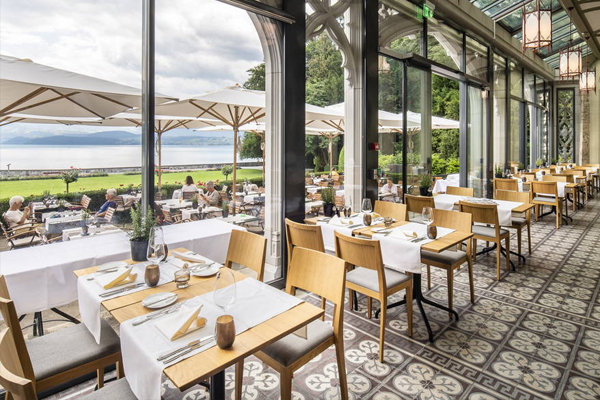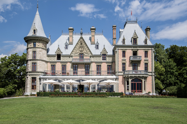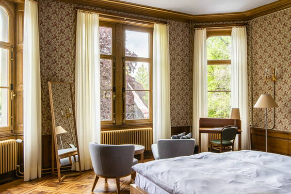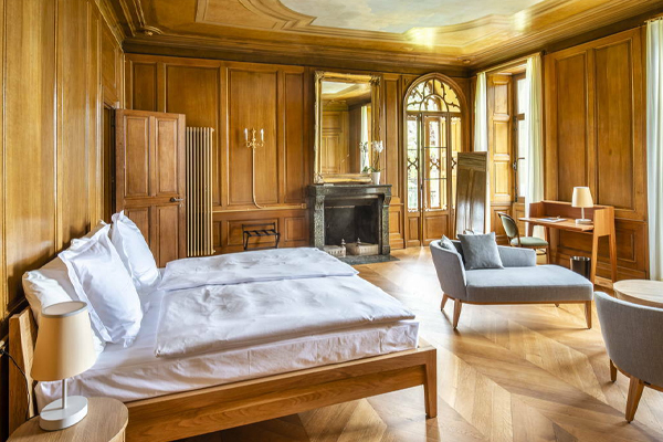 The castle has only 9 rooms for guests, each is unique and tells about the nobility of past times. Expect to pay between $200-$400 per night depending on the room and book well ahead as the hotel is nicely booked during peak travel season. With rooms facing the lake, you’ll also enjoy full views of the Swiss Alps including Mount Eiger. We suggest the Tower Suite if you can get it.