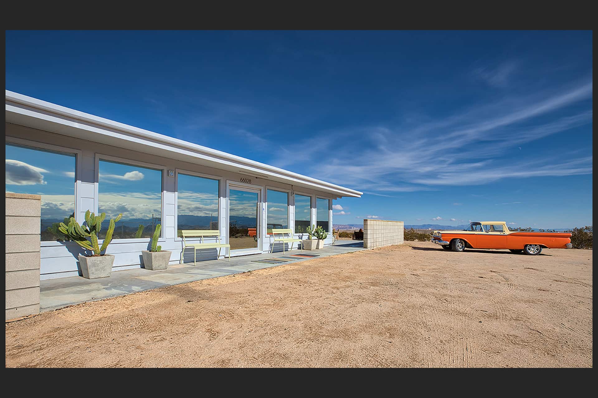 SkyRanch is an art lover’s paradise. Each room is a different experience of color and style. The giant one-way mirrored windows throughout ensure you are connected to the desert yet invisible from the outside. Not that you’d need to worry however, the expansive 5 acre property offers unobstructed sweeping views of the horizon and peace and quiet.