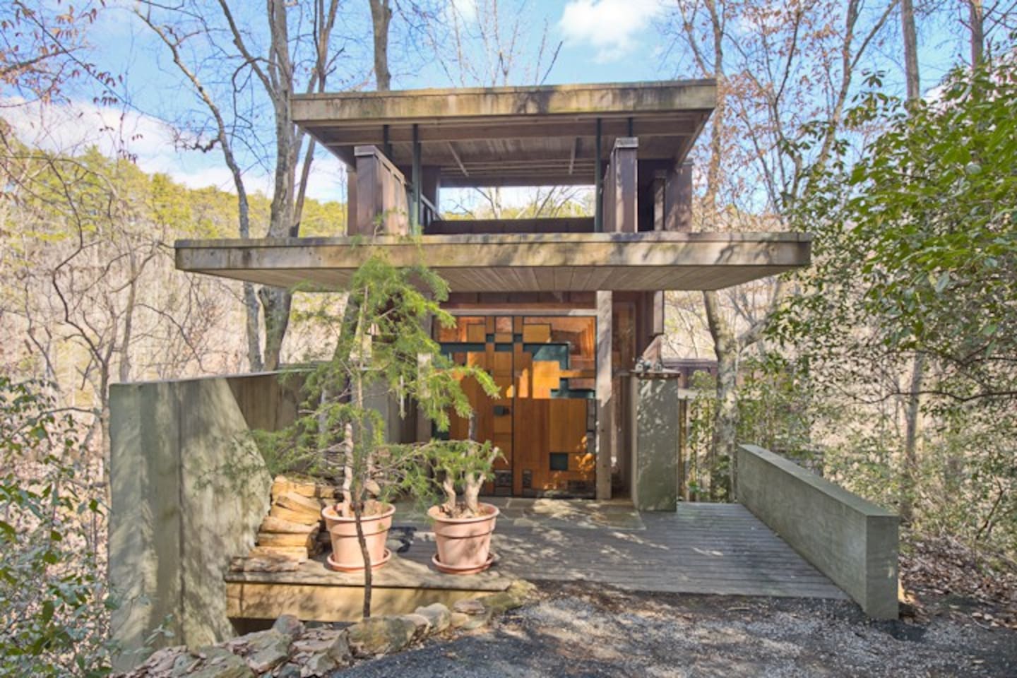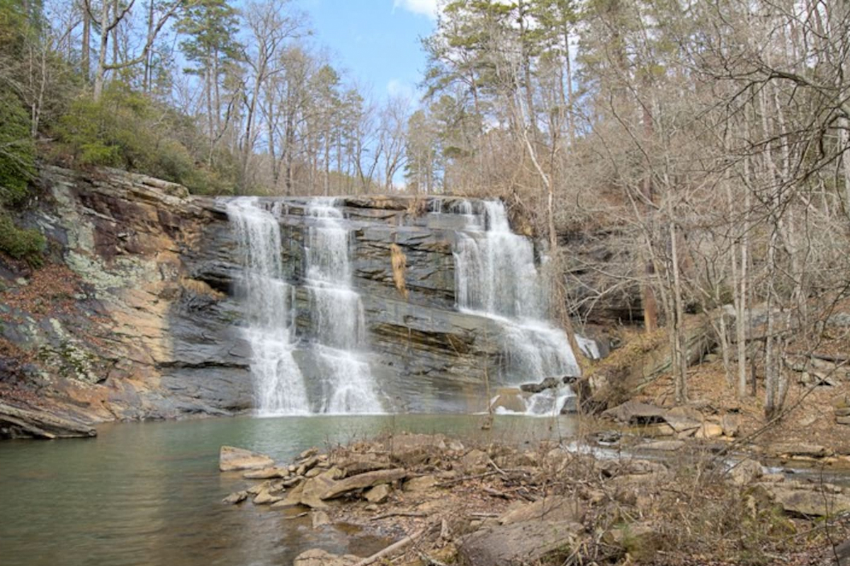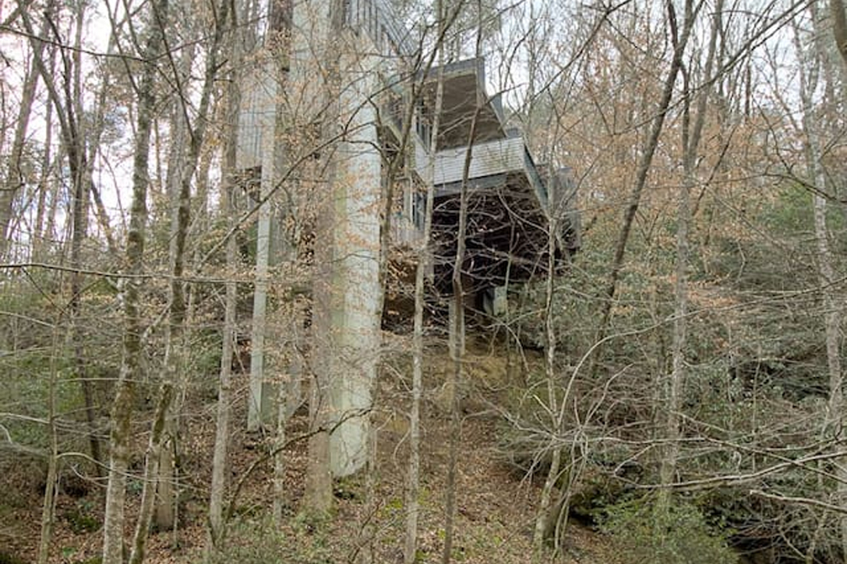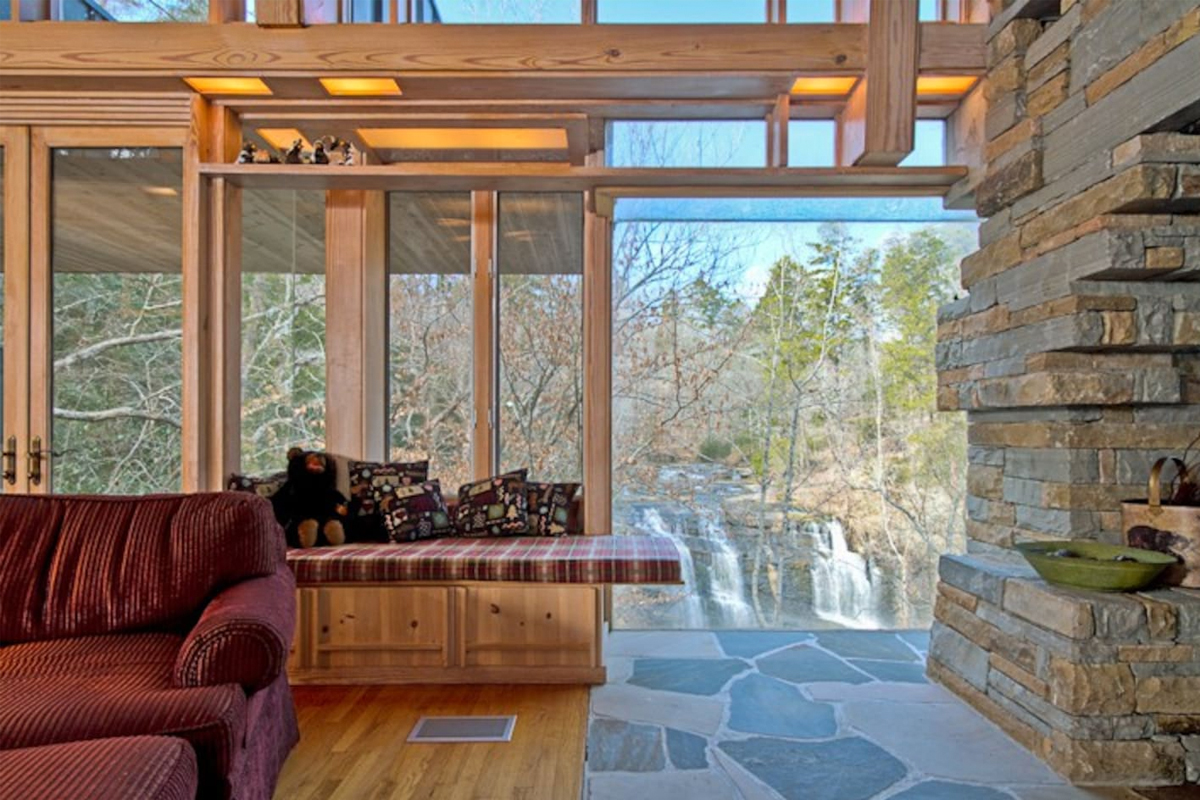 Secluded nature preserve with over 100 acres. Paths for long walks or mtn. bikes. Cliff side home overlooking a beautiful fall in an area much as it was when inhabited by Cherokee Indians. Very unique home designed by architect James H. Fox. Glass everywhere with multiple views of Fountain Falls hillside location. This unique location is more similar to “glamping.” There is no TV, cable, internet or landline. Cell reception in the house is good with Verizon, okay with Sprint, and not good with AT&T. So you’ll really be able to disconnect and reconnect with whomever you’re cuddling up with.